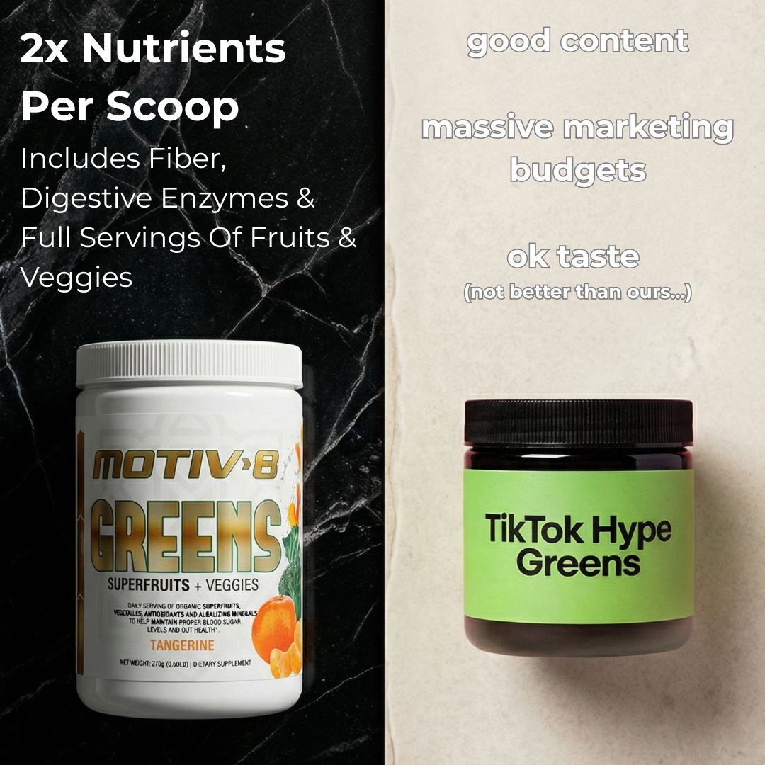 Motiv-8 Greens supplies vegan superfoods designed to nourish and revitalize both your body and brain while promoting alkalinity with naturally derived minerals.